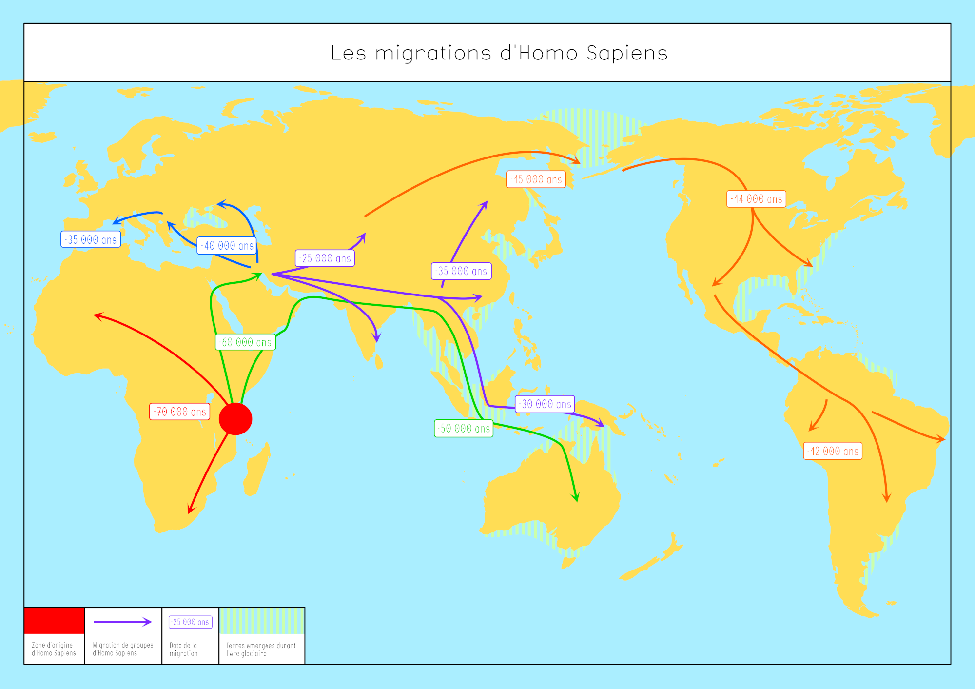 Les hominidés sont originaires du continent africain d’où ils essaimeront rapidement. Des chercheurs ont pu découvrir des traces de nos ancêtres en Afrique orientale datant de 6 à 7 millions d’années. Les proto-hommes, des espèces apparentées à l’Homo sapiens et désormais disparues, ne se risqueront au voyage vers l’Europe qu’il y a à peine 700.000 à 800.000 ans. L’Homo sapiens, lui, ne serait arrivé en Europe occidentale que 10.000 à 40.000 ans avant notre ère.
